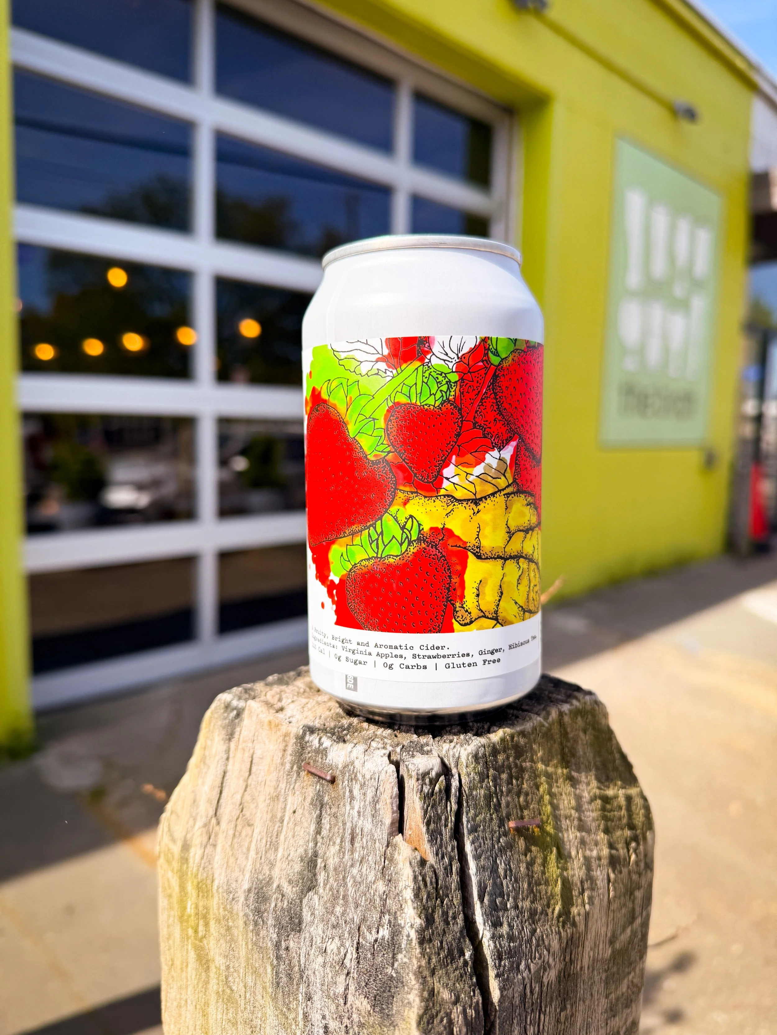 The flavor and aroma from ripe strawberries balances the tart acidity of an aromatic blend of Virginia apples with the lively spice of fresh ginger. It is bright, fruit forward and flavorful with zero grams of residual sugar.